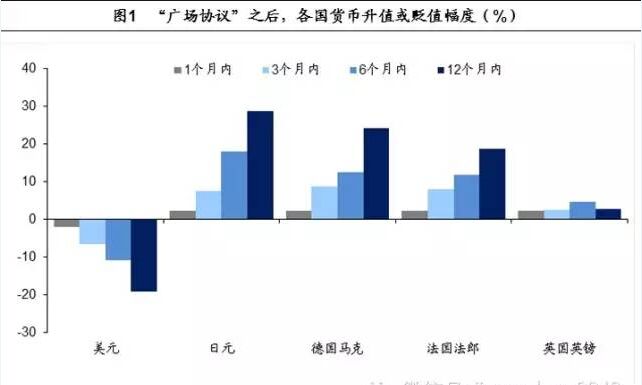 “广场协议”后美元大幅贬值。在1985年9月的“广场协议”后开始了对美元的干预,美国动用了32亿美元,其他国家动用了50亿美元。后来意大利等国加入后,干预国家增加到10国,并增加了20亿美元的干预资金。广场协议宣布的当天,美元对其他主要货币的加权平均值就下跌了4%。到1988年末,美元对马克和日元分别贬值了约50%。